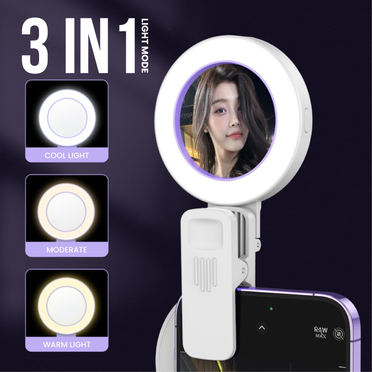 SMC03 - SELFIE REAR MIRROR CLIP WITH LED LIGHT